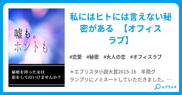★エブリスタ ★魔法のiらんど 恋愛小説 『 社内恋愛 』 小説化 業界NO.1の企業に入社したヒロイン、草下ゆりは、そこで同期メンバーの一人・広斗に急速に惹かれていく。 そんなゆりの前に現れたのは、女性なれした端整な顔を持つ、上司・香取崇。. エブリスタが主催する「エブリスタ 未完結でも参加できる 執筆応援キャンペーン 第回「男性視点の恋愛」」の情報です。<p>良い作品を執筆したい!というあなたの気持ちをエブリスタが応援します!</p> <p>「未完結でも参加できる 執筆応援…. アメブロでもペナルティ?をいただきましたが (これは強制非公開(笑)) まさか、エブリスタでもいただく.